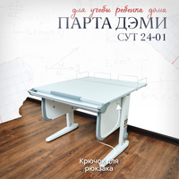 Парта растущая ДЭМИ СУТ-24-01 размер 75х82х81,5 см цвет ЛДСП белая, накладки серые, ноги белые