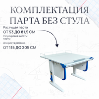 Купить Парта растущая ДЭМИ СУТ-24-01 размер 75х82х81,5 см цвет ЛДСП белая, накладки синие, ноги белые с доставкой по всей России.