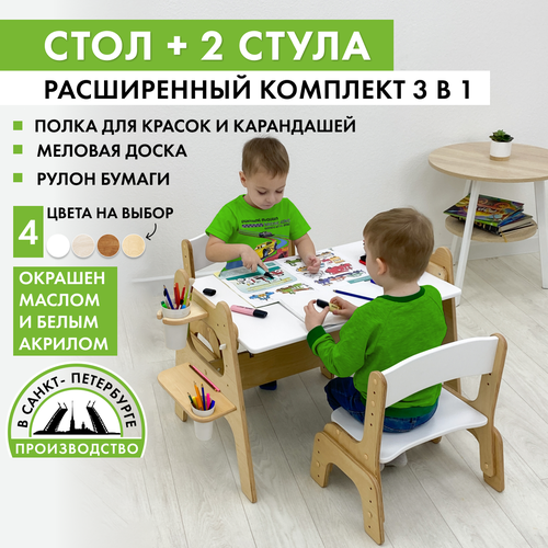 Купить Детский деревянный стол и 2 стула, комплект растущей мебели, с грифельной доской и мольбертом с доставкой по всей России.