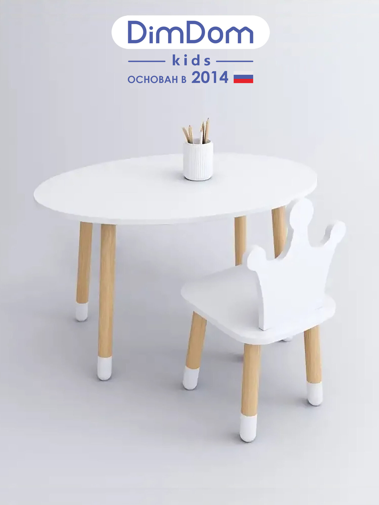 Стол детский Овал + стул Корона от DIMDOM kids, белые, МДФ, ножки из массива сосны: сравнение цен, характеристики, фото, актуальное наличие и цены.