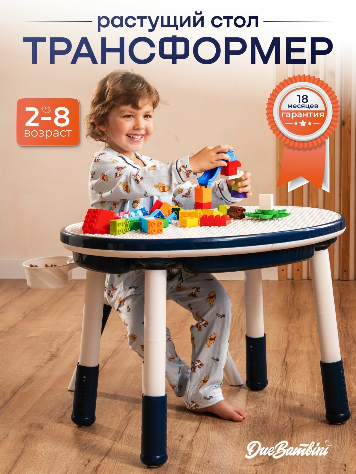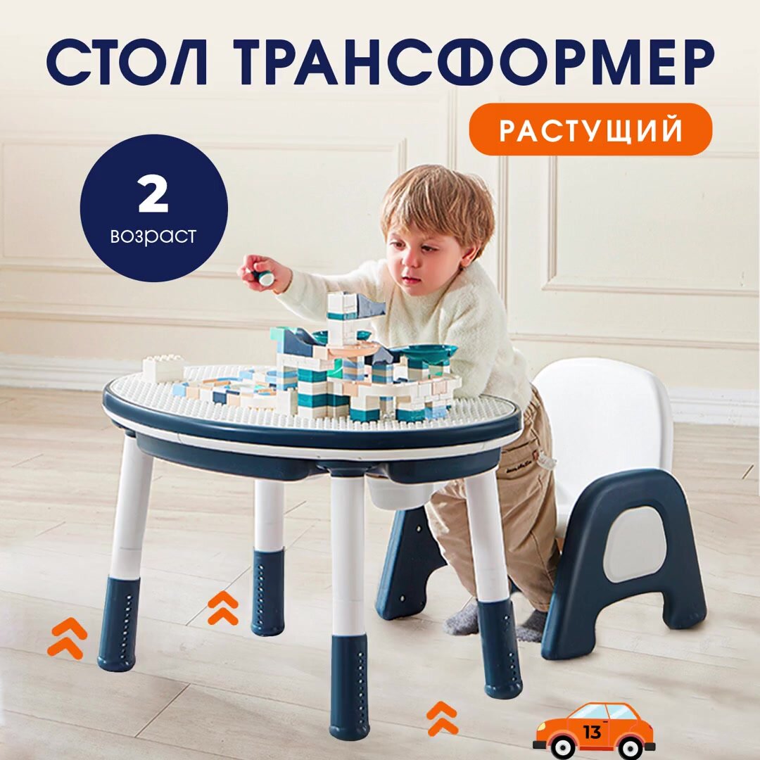 Стол детский трансформер Due Bambini с регулировкой высоты и контейнером для хранения игрушек, с двусторонней крышкой для собирания конструктора и рисования: сравнение цен, характеристики, фото, актуальное наличие и цены.