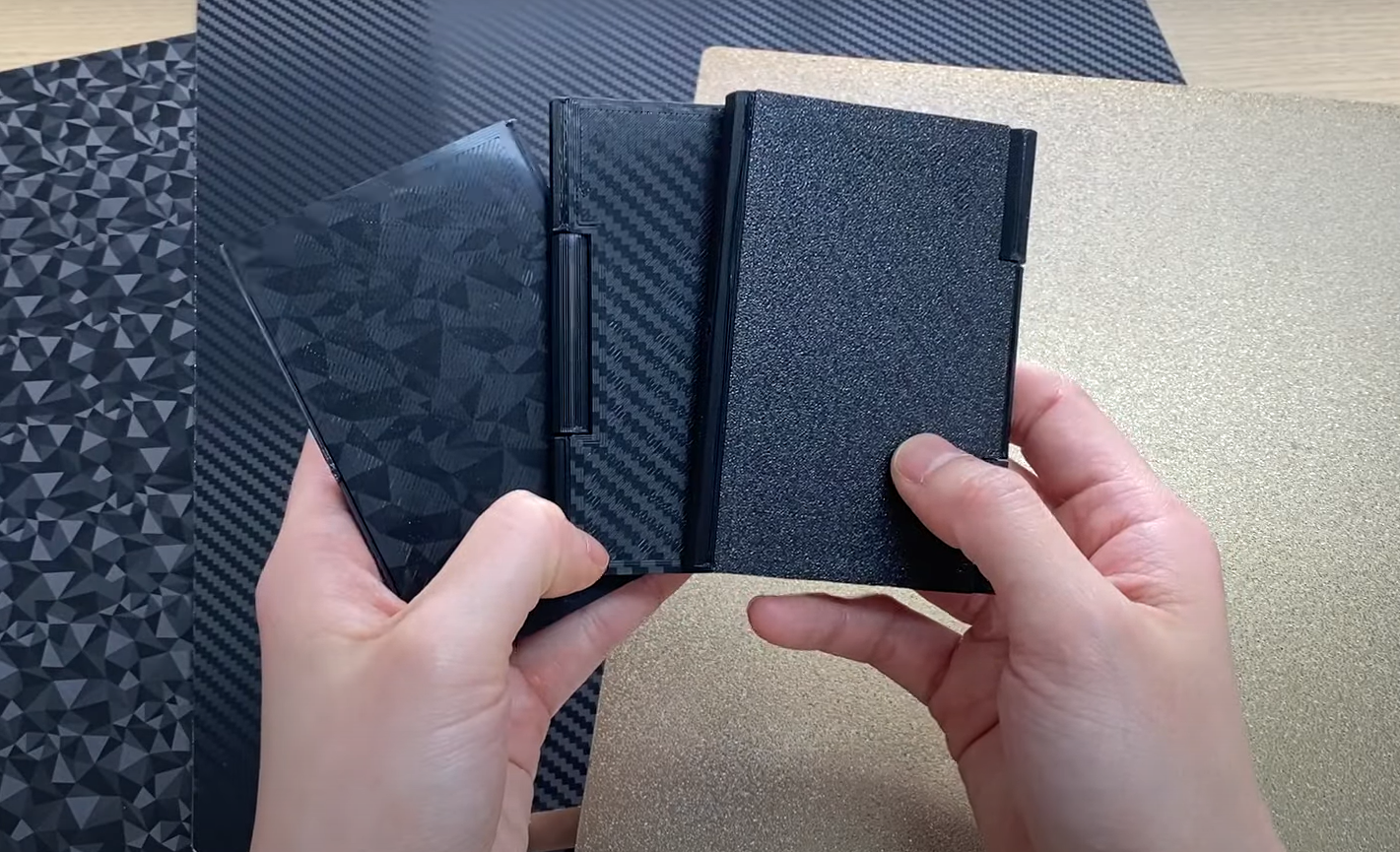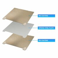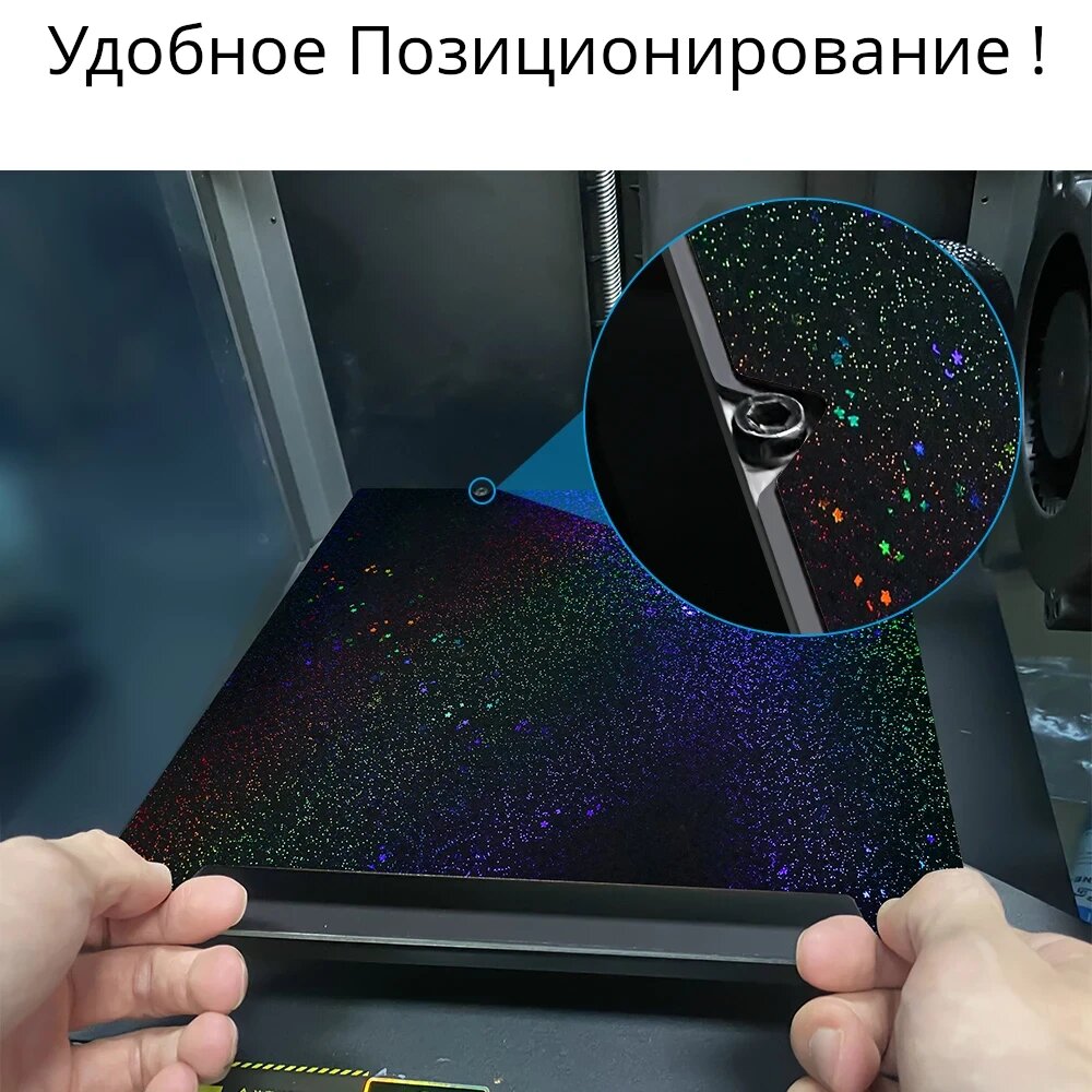 Покрытие стола из PEI и PET Стол оснащен специальным покрытием из PEI и PET, которое обеспечивает высокую степень липкости и термостойкости. Это делает процесс печати более удобным и эффективным, позволяя передать на первый слой детали рисунок с эффектом шагрени и под карбон.