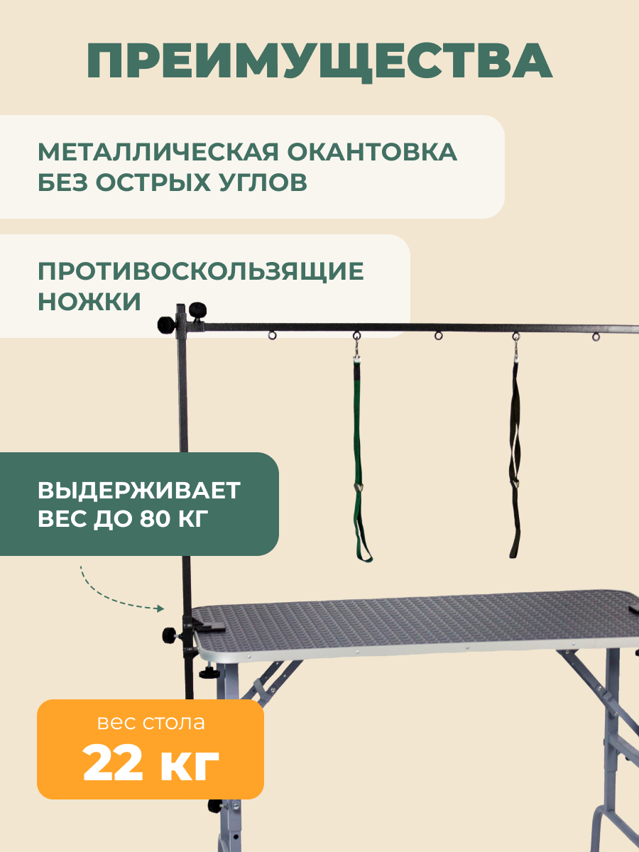 Стол для груминга собак 120х60 см с регулировкой высоты складной, с П-кронштейном: сравнение цен, характеристики, фото, актуальное наличие и цены.