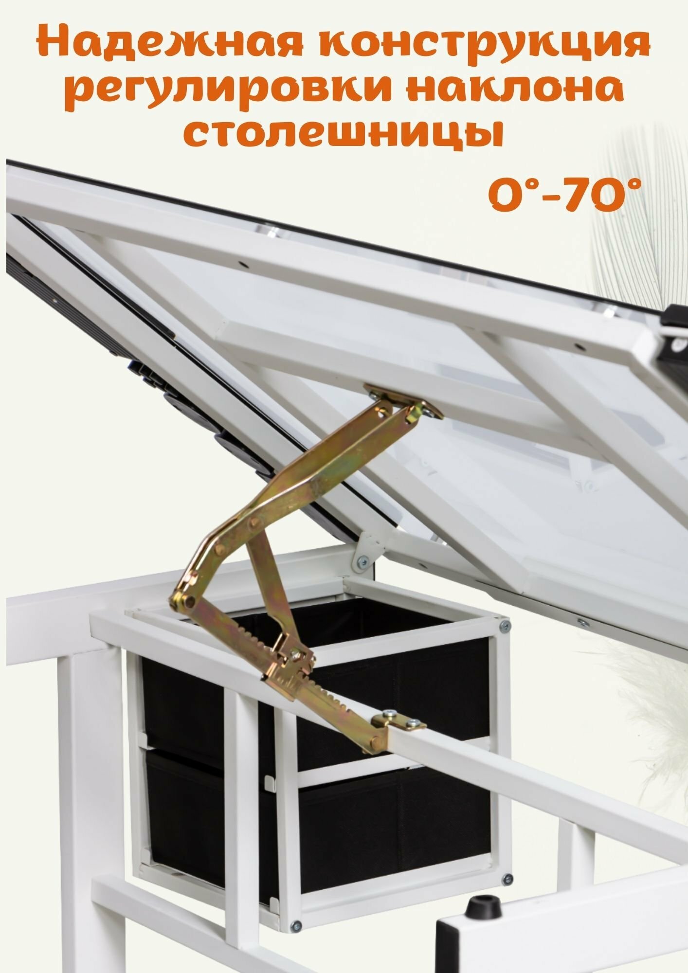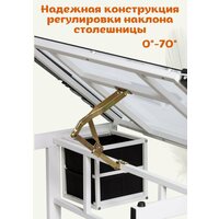 Угол наклона столешницы регулируется от 0 до 70 градусов с фиксацией в заданом положении.