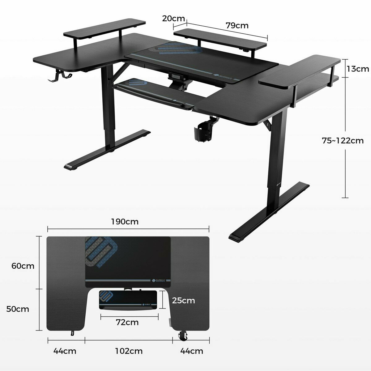 Мощный двухмоторный письменный стол с подсветкой RGB LED: Оснащен одно- и многоцветной подсветкой с 6-ю цветами RGB и 1-ой белой лампой. Встроенный контроллер освещения поможет вам легко переключаться между режимами.