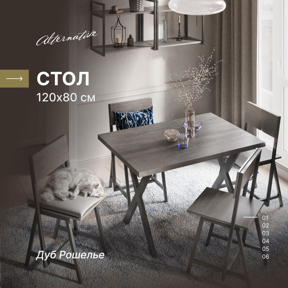 Стол для кухни и гостиной, обеденный, офисный, для кафе, для кофейни и ресторана Alternative Дуб Рошелье 120х80 см: сравнение цен, характеристики, фото, актуальное наличие и цены.