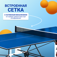 * Каждый стол комплектуется сеткой. При подготовке стола к игре не нужно каждый раз устанавливать и натягивать сетку. Она храниться в собранном виде. Достаточно просто разложить 2 игровые зоны горизонтально и начать игру.