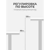 Технические харатеристики подстолья для стола. Диапазон поднятия столешницы: 60 см - 125 см. Скорость подъема столешницы: 30 мм/с. Шум при использовании механизма поднятия: 48 db.