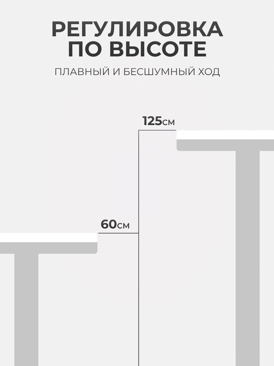Технические харатеристики подстолья для стола. Диапазон поднятия столешницы: 60 см - 125 см. Скорость подъема столешницы: 30 мм/с. Шум при использовании механизма поднятия: 48 db.