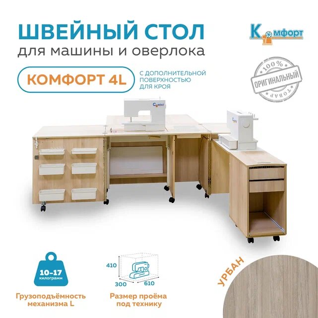 Купить Стол для швейной машины (10-17кг) и оверлока Комфорт-4L (Урбан) с доставкой по всей России. Стол для швейной машины (10-17кг) и оверлока Комфорт-4L (Урбан): сравнение цен, характеристики, фото, актуальное наличие и цены.