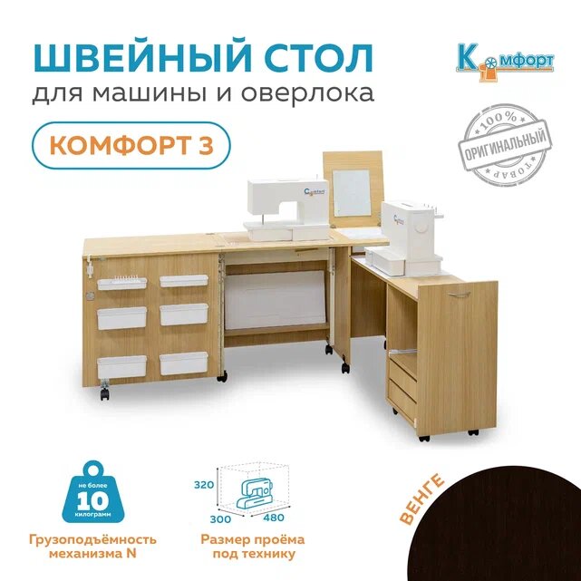 Купить Стол для швейной машины (до 10кг) и оверлока Комфорт-3 (Венге) с доставкой по всей России. Стол для швейной машины (до 10кг) и оверлока Комфорт-3 (Венге): сравнение цен, характеристики, фото, актуальное наличие и цены.