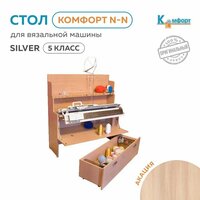 При создании стола для вязальной машины были учтены рекомендации и замечания опытных вязальщиц. Компактность, эргономичность, надежность, дизайн - вот основные критерии, которые легли в его основу. Стол изготовлен из качественных материалов и фурнитуры, имеет оригинальный дизайн, который впишется в любой интерьер и не займет много места в Вашей комнате. Конструкция выдвижного узла и его фиксация позволит за несколько секунд установить машину в рабочее положение. Работать можно как на одной, так и на двух фонтурах. Пряжа подается снизу вверх, через специальное отверстие в полке. Эта система позволяет обеспечить более качественный сход нити, а также исключает необходимость убирать и/или менять бобины после завершения процесса вязания. Вместе с этим вы можете устанавливать бобины и на откидную крышку. На откидной крышке очень удобно разместить моталку. На средней полке бобины и принадлежности, а благодаря выкатной системе нижнего ящика всегда будет удобный доступ к любой принадлежности. В пластиковых контейнерах разместятся иглы, грузы, перфокарты и другие полезные приспособления для вязания. Комфорт в работе за вязальной машиной может быть достигнут только в случае полного исключения всех колебаний и вибраций при движении каретки. Поэтому в столе не используются традиционные колеса, а он установлен на регулируемые по высоте опоры. Также в столе применена система выдвижения и фиксации машины, которая позволяет надежно зафиксировать машину во время работы. Выдвижение происходит по усиленным направляющим, способным выдерживать нагрузки до 200 кг, а фиксация происходит по всей ширине при помощи фиксирующей панели, которая находится с задней стороны выдвижной полки.