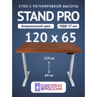 Стол двухмоторный с регулируемой высотой Stand PRO подстолье белое и столешница МДФ шпон Американский орех 120х65: сравнение цен, характеристики, фото, актуальное наличие и цены.