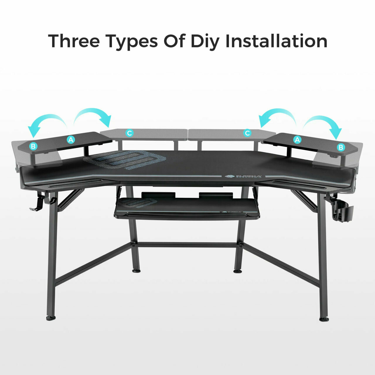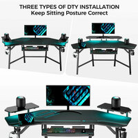 Основа из легированной стали, столешница из МДФ с карбоновым покрытием. Подставка под клавиатуру, подставка для монитора, подстаканник, крючок для наушников, подставка для геймпадов, управляемая RGB-подсветка. Размер 1827*760*965 мм.