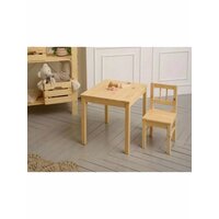 Детский стол и стул свала, комплект – это практичное решение для детской комнаты, сочетающее в себе высокое качество и экологичность натурального дерева, современный дизайн и безопасность в использовании. В комплекте - один стол и один стул, второй детский стул можно заказать дополнительно. Весь комплект изготовлен из массива сосны и обладает высокой прочностью и долговечностью, что гарантирует его долгий срок службы. Комплект детской мебели рекомендован для детей в возрасте до 6 лет и ростом до 120 сантиметров. Оптимальные размеры стола (столешница 50х59 см, высота стола 50 см) и стула (высота стула 57 см, высота сиденья 29 см, размеры сиденья 27х26 см) обеспечивают правильное положение ребенка во время занятий или игр, способствуя его здоровому развитию, а отсутствие острых углов делают нахождение ребенка за столом безопасным и комфортным. Каждый элемент этого комплекта соответствует всем стандартам безопасности для детской мебели, что подтверждено сертификатом соответствия. Несмотря на свои размеры комплект детской мебели достаточно компактный, чтобы не занимать много места в детской комнате. Комплект поставляется без покраски, но при желании вы можете его оставить как есть или разрисовать вместе с детьми либо покрыть лаком или маслом на свой выбор. Данное изделие изготовлено на фабрике, которая изготавливала товары для IKEA.
