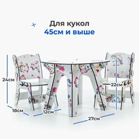 Стол и стулья легко подойдут для любых кукол до 45 см: испанские пупсики Paola Reina (Паола Рейна), куклы-младенцы и пупсы беби борн (Baby Born), реборн, карапуз Край Беби(Cry Babies), барби(barbie), монстер хай (Monster High), винкс (Winx), сказочный патруль и другие.