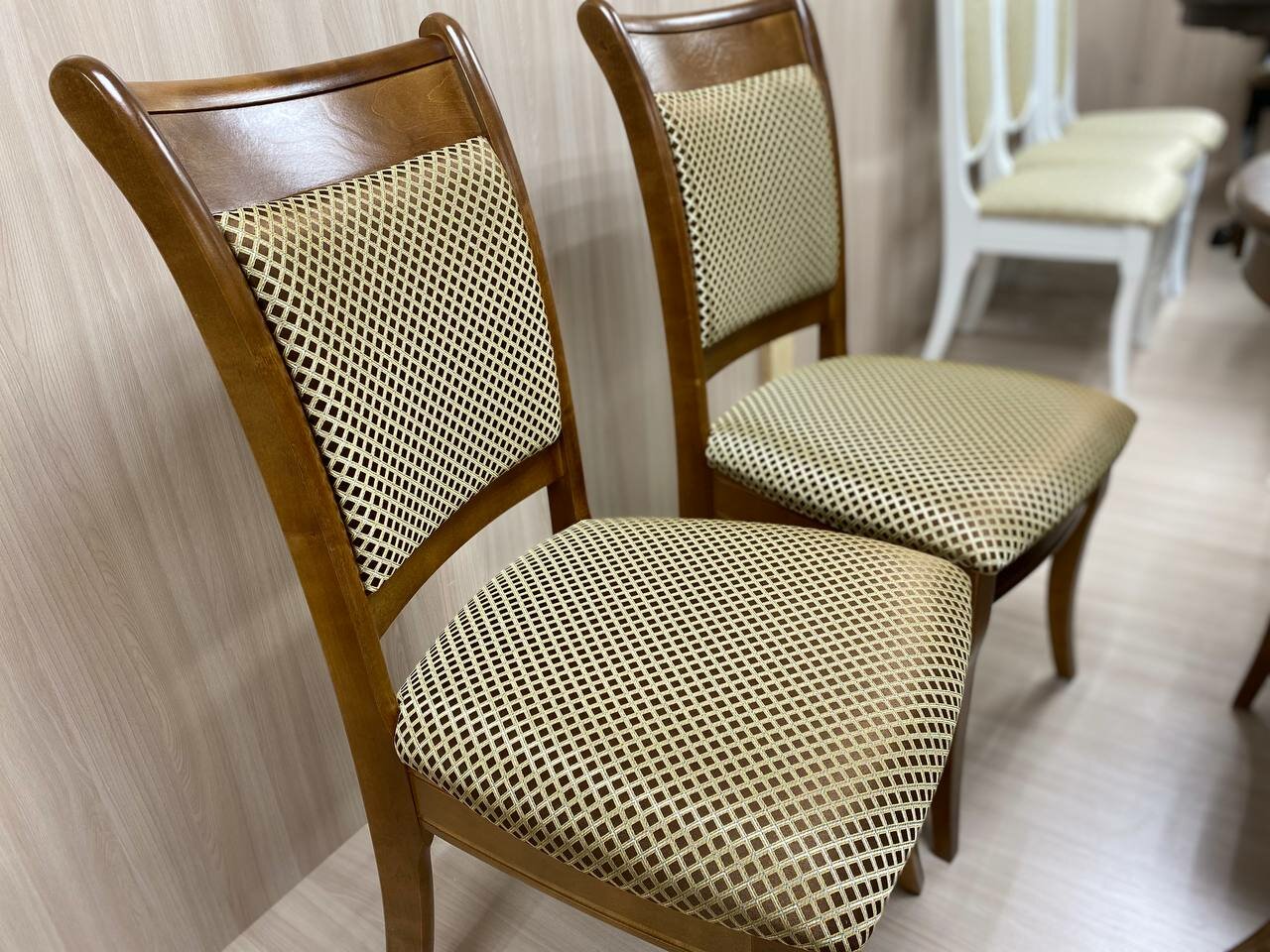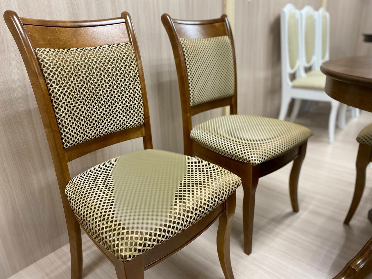 Стол и стулья изготовлены из массива березы, что гарантирует их прочность и долговечность. Ножки стола выполнены из массива березы, а столешница - из МДФ. Это обеспечивает устойчивость и надежность конструкции.