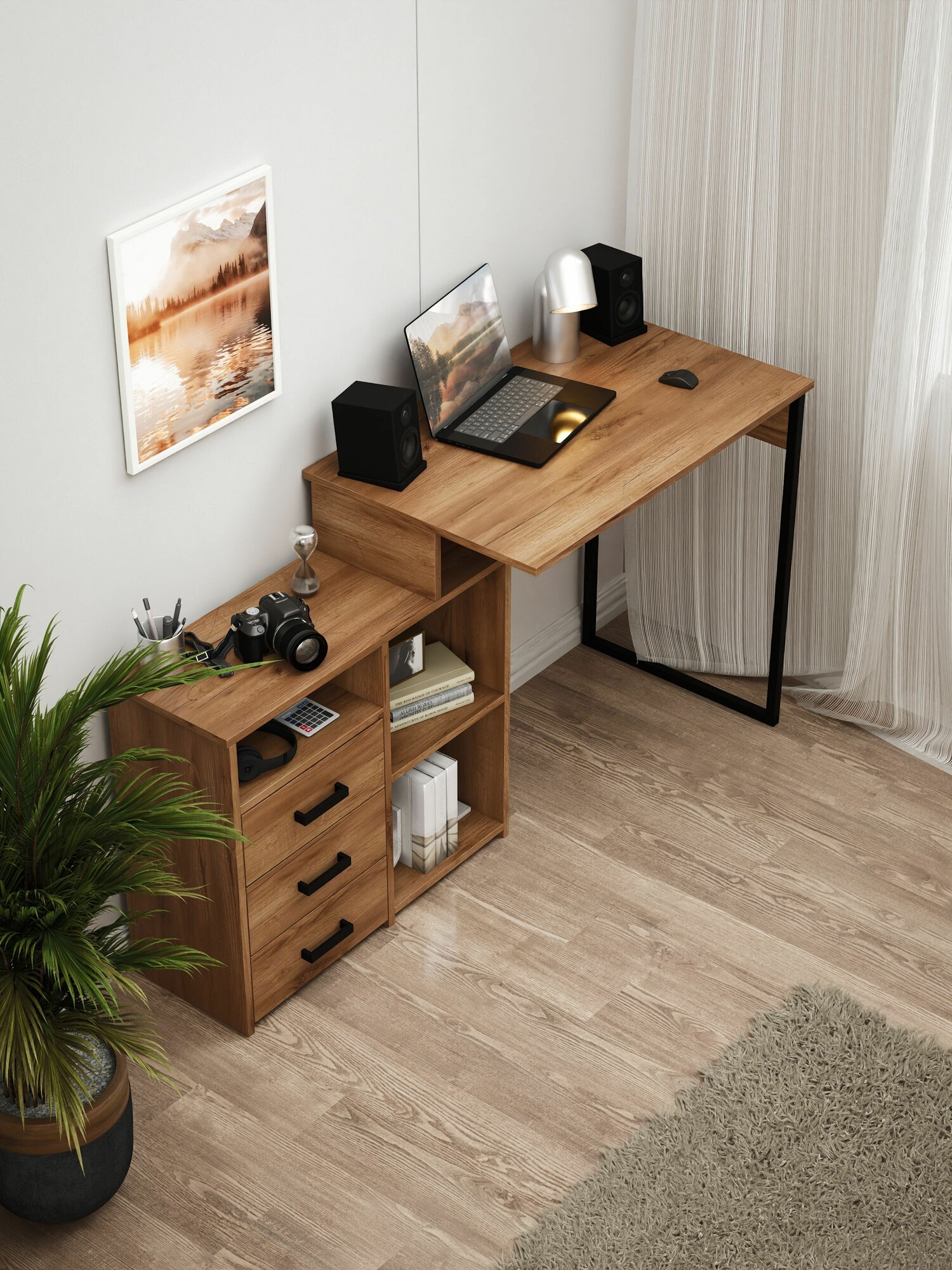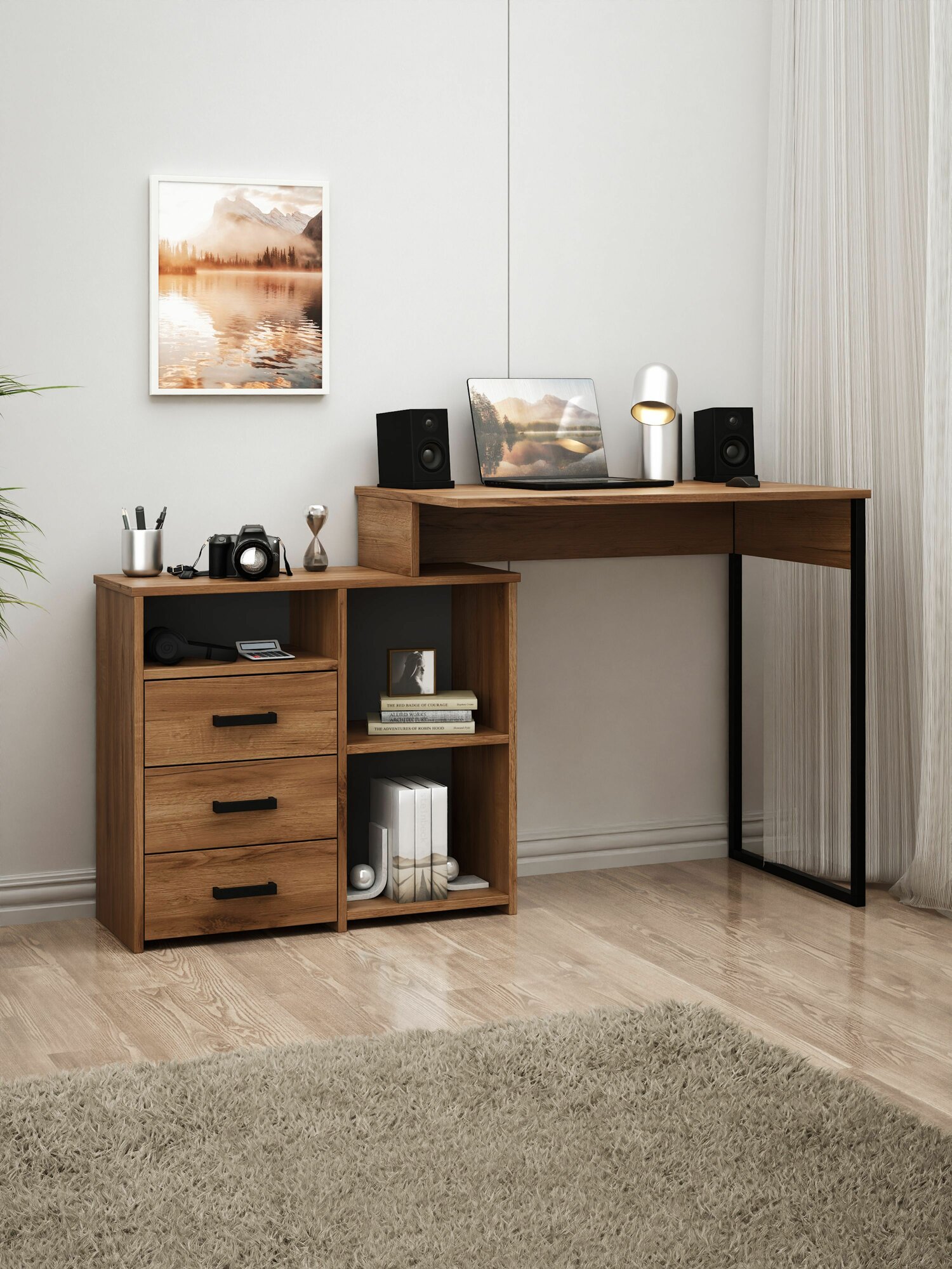 Купить Стол Интро-123 дуб крафт табак письменный, компьютерный, угловой, с ящиком и полкой с доставкой по всей России.
