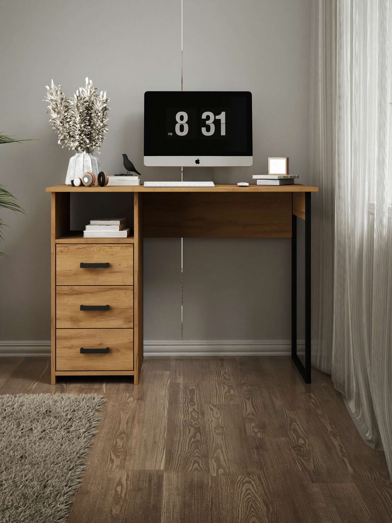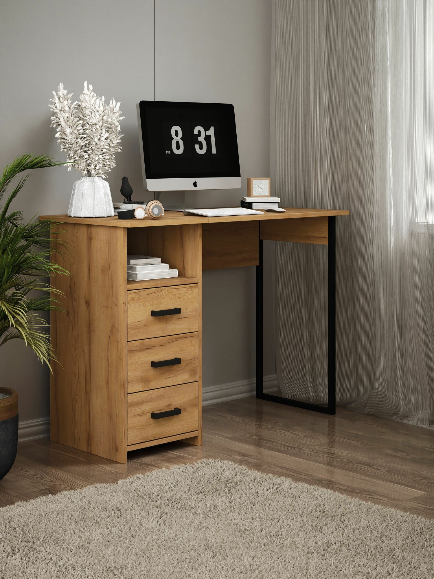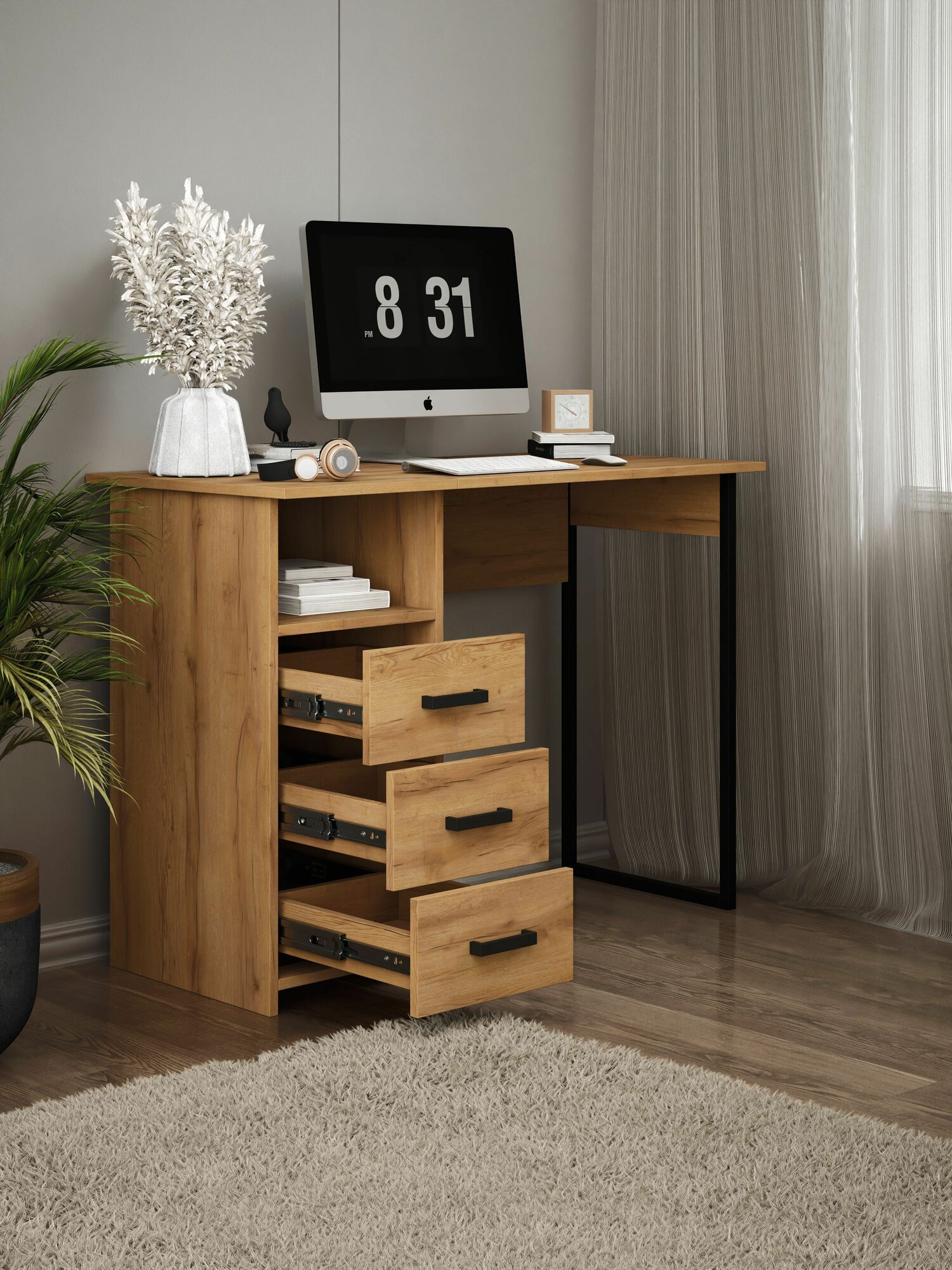 Стол Интро-126 дуб вотан-дуб крафт золотой письменный, компьютерный, с ящиком и полкой: сравнение цен, характеристики, фото, актуальное наличие и цены.