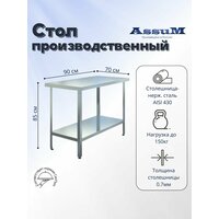 Купить Стол производственный Assum, 900х700х850мм, борт, открытый, 1 полка сплошная оцинк, разборный, каркас уголок оцинк, ст. нерж.430 с доставкой по всей России.
