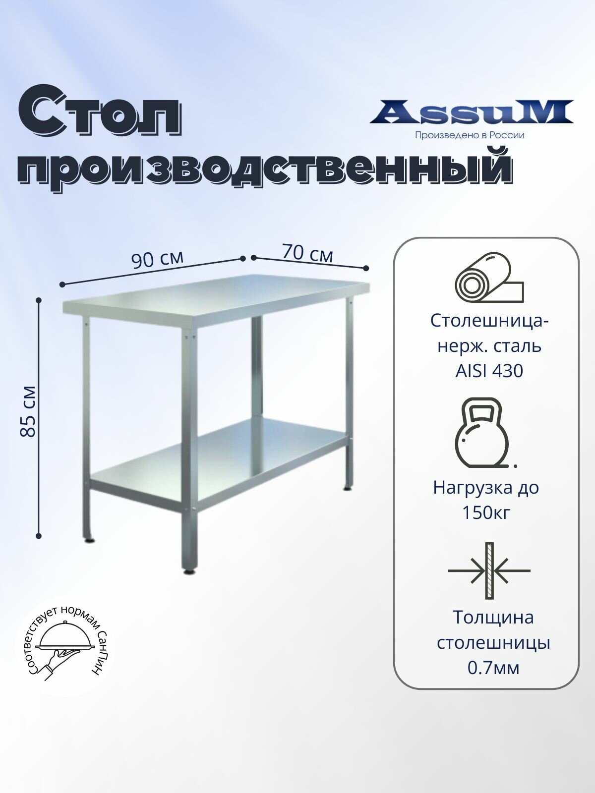 Стол производственный Assum, 900х700х850мм, борт, открытый, 1 полка сплошная оцинк, разборный, каркас уголок оцинк, ст. нерж.430: сравнение цен, характеристики, фото, актуальное наличие и цены.