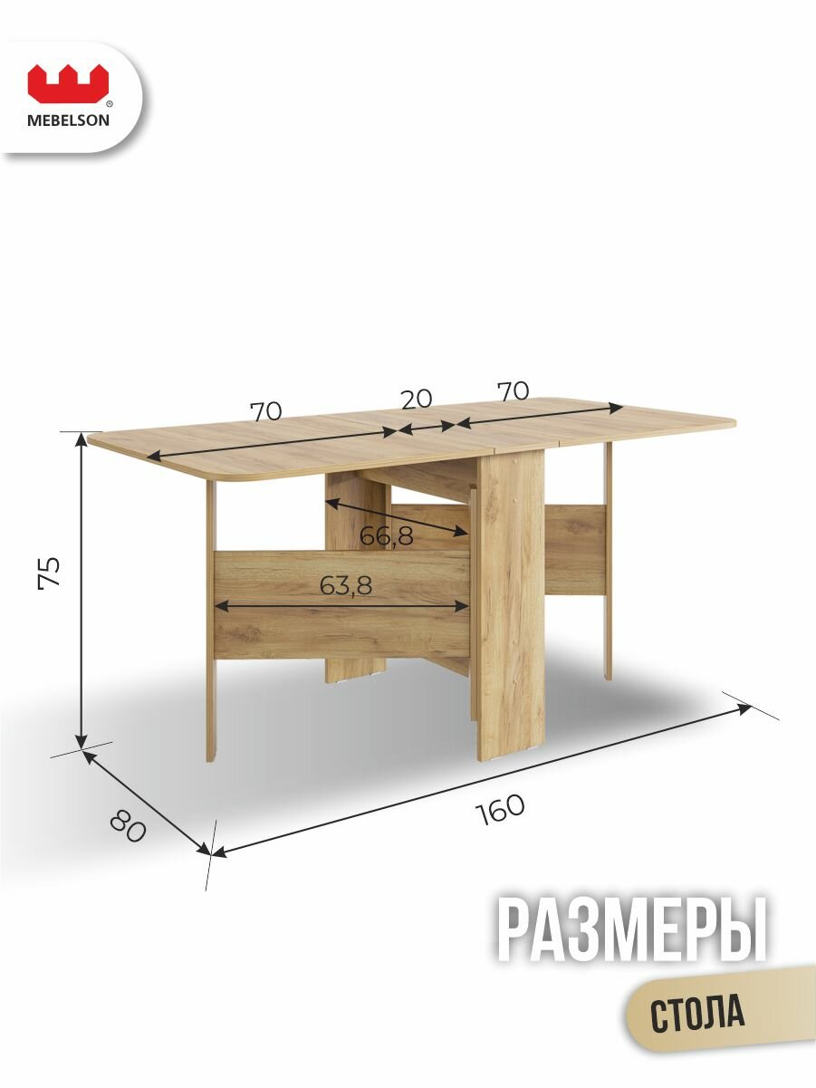 Стол-книжка раскладной «Мечта 2», дуб крафт золотой, 160*80*75 см, Mebelson: сравнение цен, характеристики, фото, актуальное наличие и цены.