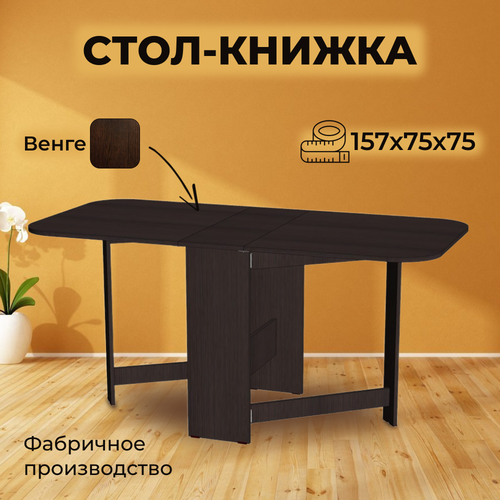 Стол-книжка — это идеальное решение для компактных кухонь и небольших квартир. Этот стол в цвете венге станет стильным акцентом в вашем интерьере, а его функциональность позволит с легкостью справляться с различными задачами. Размеры 25/157х75х75 см делают его подходящим как для повседневного использования, так и для совместных обедов с семьей или друзьями.