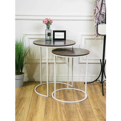 Комплект стильных чайных столов круглые для гостиной, в офис, прихожую, спальню, в гостиницу, с железной ножкой 2 шт: сравнение цен, характеристики, фото, актуальное наличие и цены.