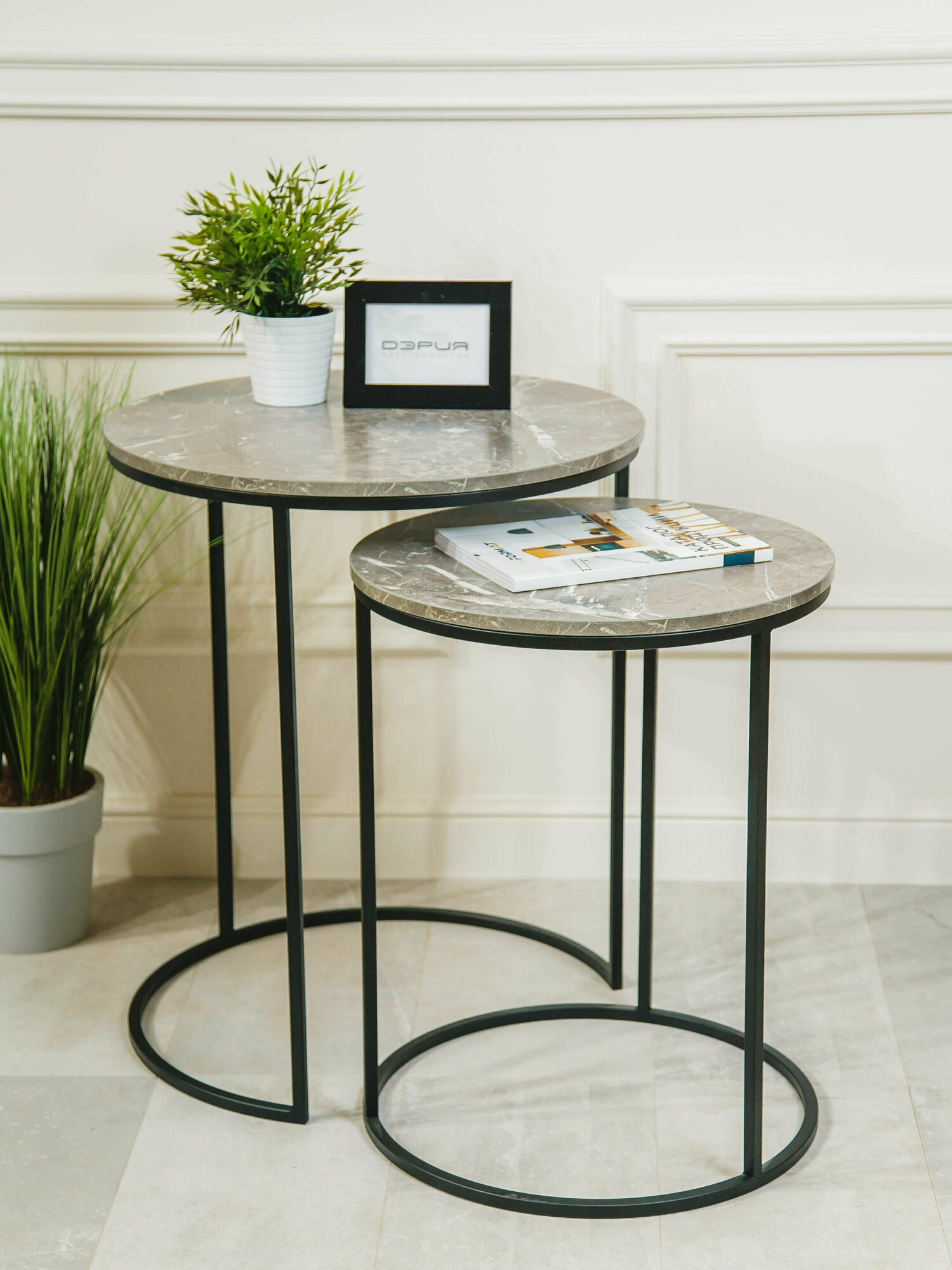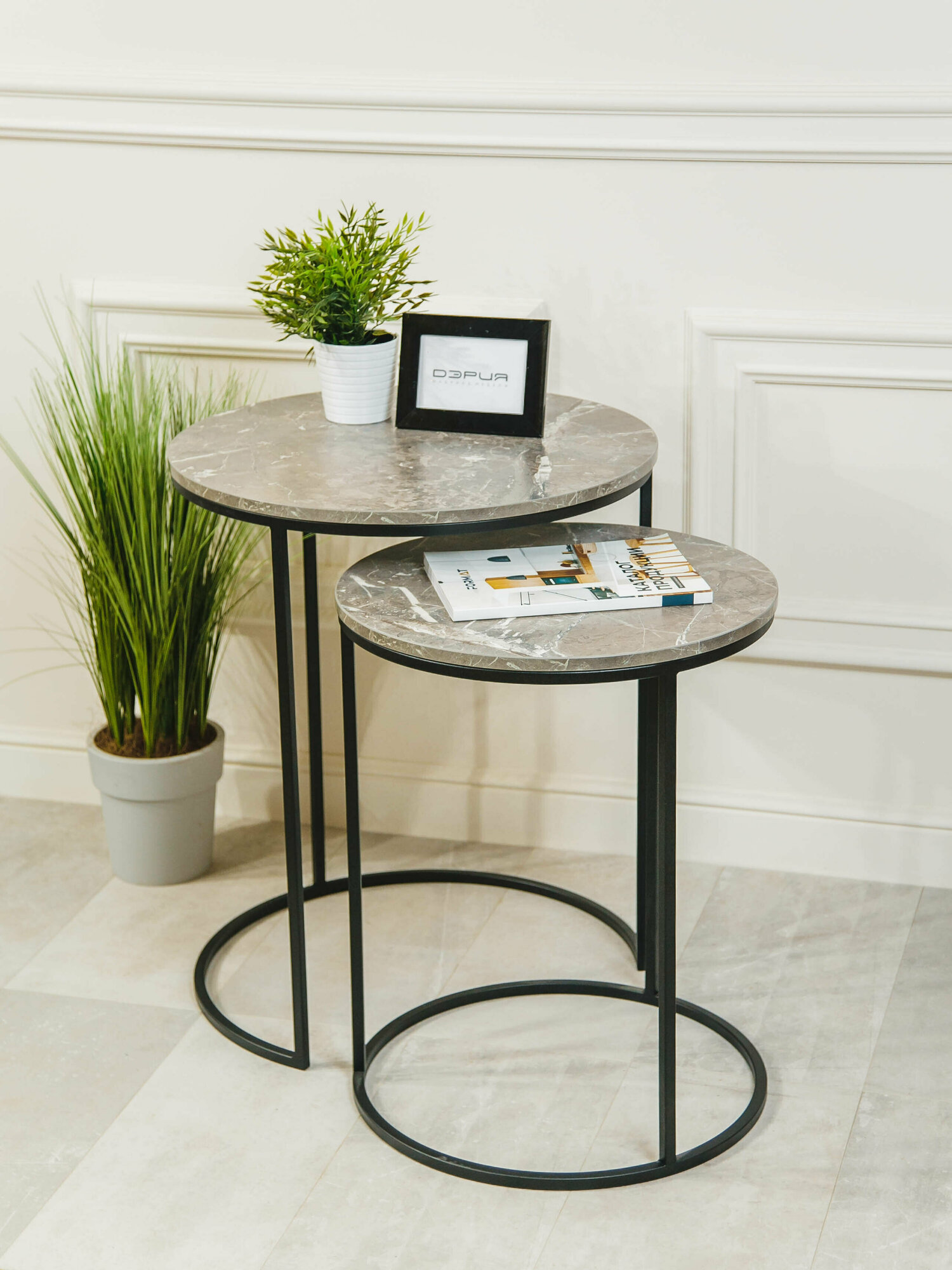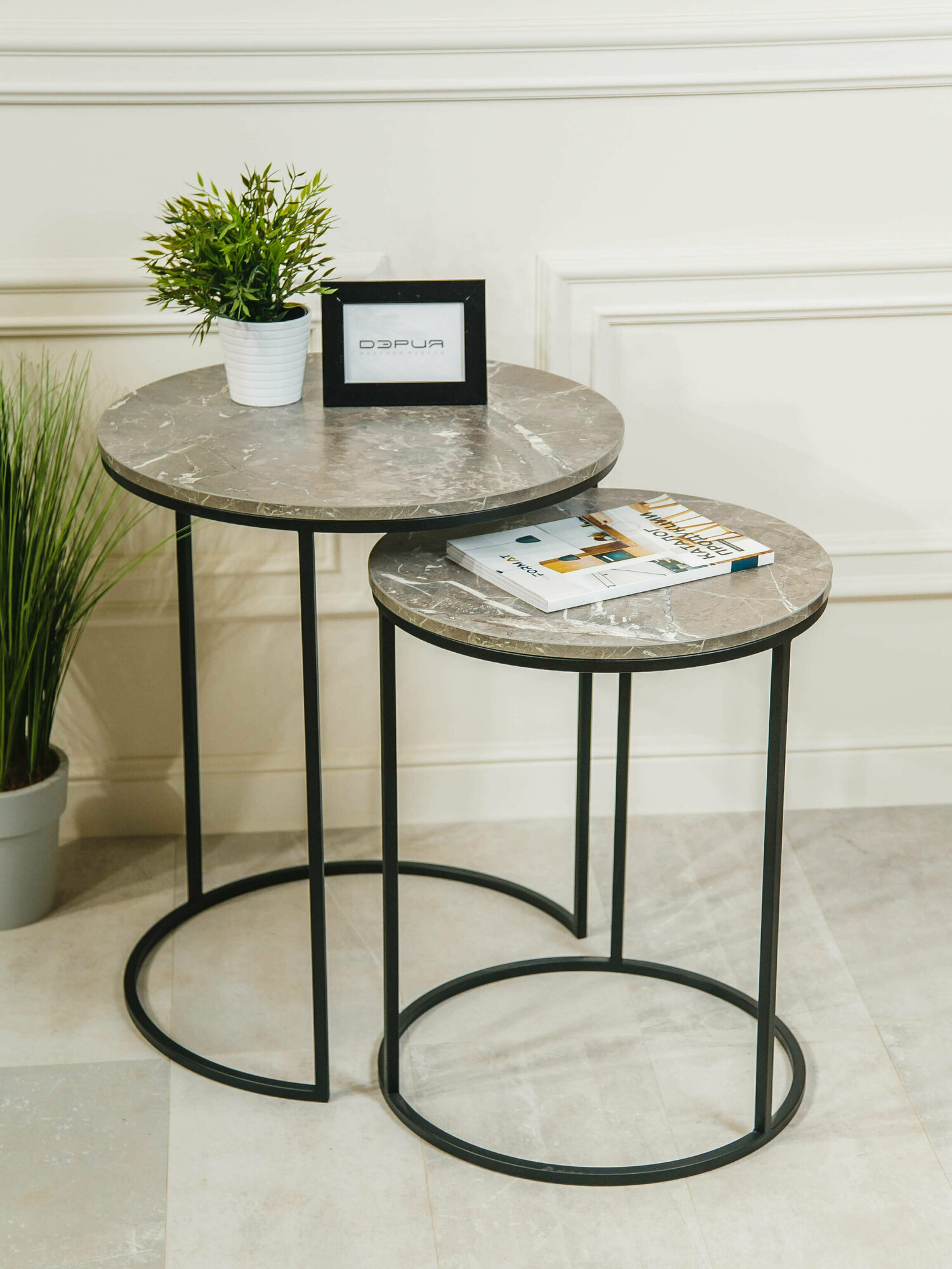 Стол кофейный журнальный поставляется в комплекте из двух штук. Это позволяет удобно разместить блюдо с фруктами или вазочку со сладостями к приходу гостей.