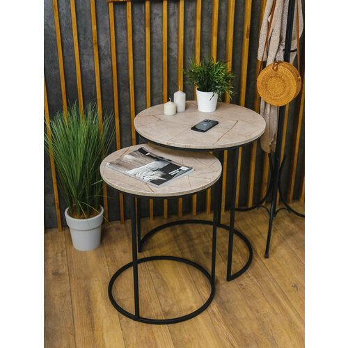 Купить Комплект придиванный чайный столик для журналов и книг с металлической ножкой интерьерный, ЛДСП, стильный круглый стол с доставкой по всей России.