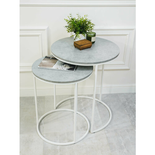 Купить Стильный чайный столик круглый для гостиной, в офис, прихожую, спальню, в гостиницу, серый с белой железной ножкой с доставкой по всей России. Стильный чайный столик круглый для гостиной, в офис, прихожую, спальню, в гостиницу, серый с белой железной ножкой: сравнение цен, характеристики, фото, актуальное наличие и цены.