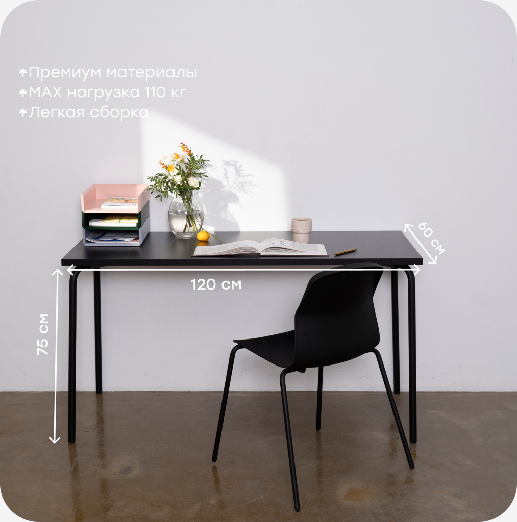 Стол компьютерный, 120х60х75 см, письменный, прямоугольный на металлических ножках, черный: сравнение цен, характеристики, фото, актуальное наличие и цены.