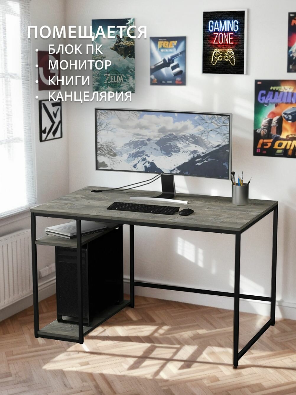 Стол компьютерный BRAUN BIG loft, серый, письменный, игровой с полками, 120×72,2×73,6 см, гростат: сравнение цен, характеристики, фото, актуальное наличие и цены.