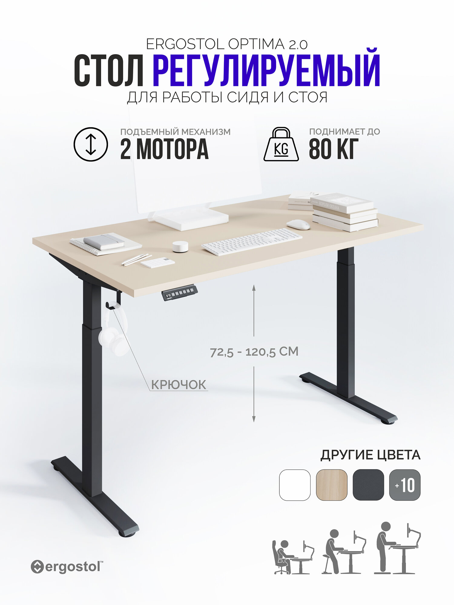 Купить Стол компьютерный Ergostol Optima 2.0 120х68 см, регулируемый по высоте, Бежевый песок/черный с доставкой по всей России.