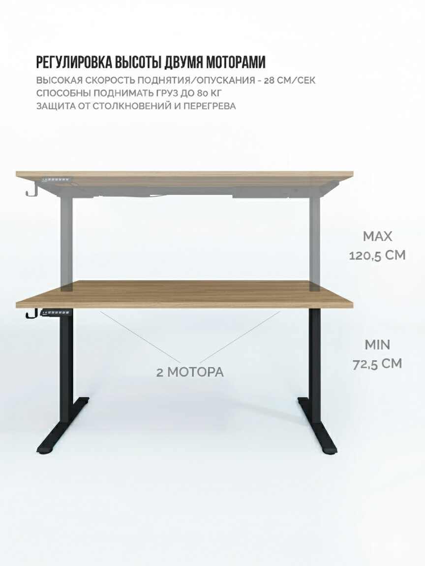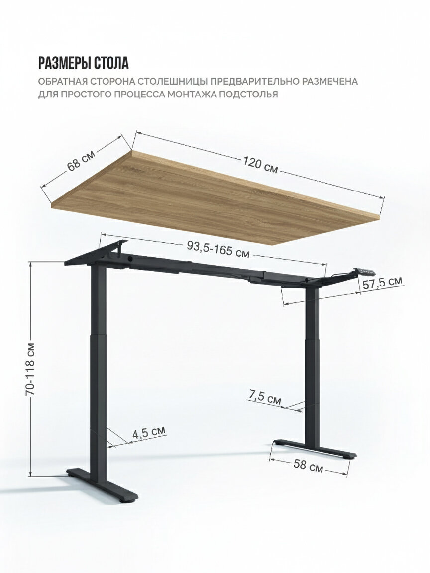 Стол компьютерный Ergostol Optima 2.0 120х68 см, регулируемый по высоте, Дуб Канзас коричневый/черный: сравнение цен, характеристики, фото, актуальное наличие и цены.