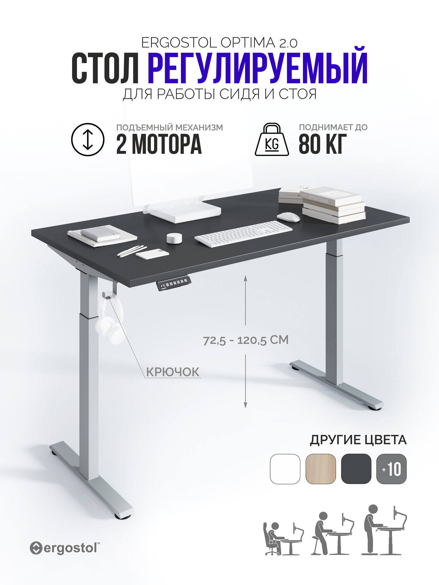 Купить Стол компьютерный Ergostol Optima 2.0 180х90 см, регулируемый по высоте, Черный графит/серебристый с доставкой по всей России.