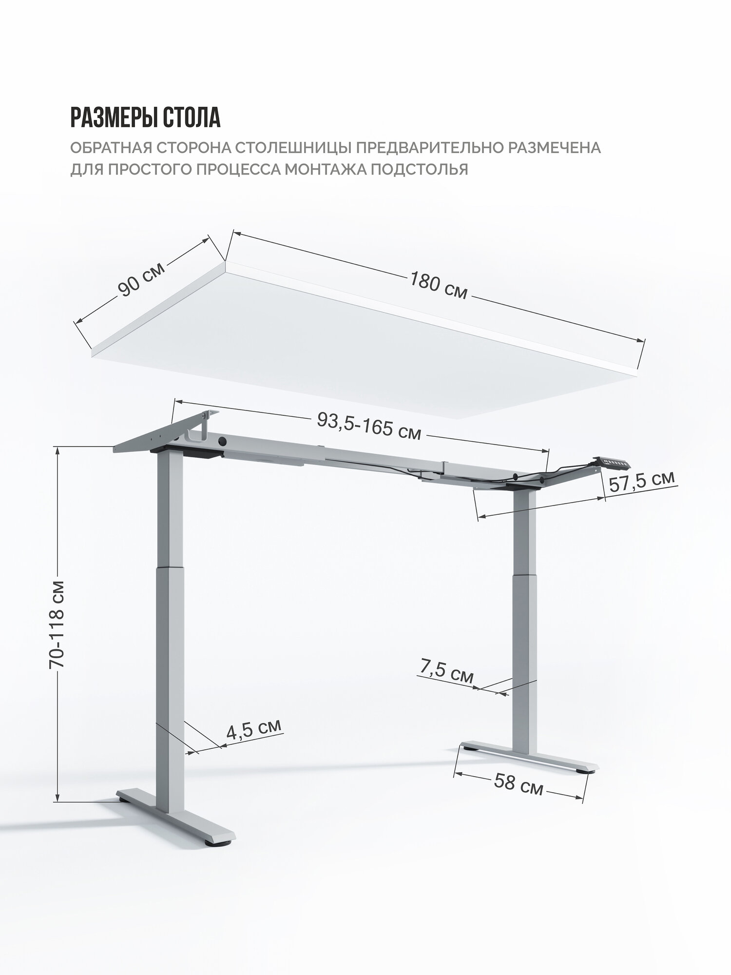 Стол компьютерный Ergostol Optima 2.0 180х90 см, регулируемый по высоте, Дуб термо черно-коричневый/серебристый: сравнение цен, характеристики, фото, актуальное наличие и цены.