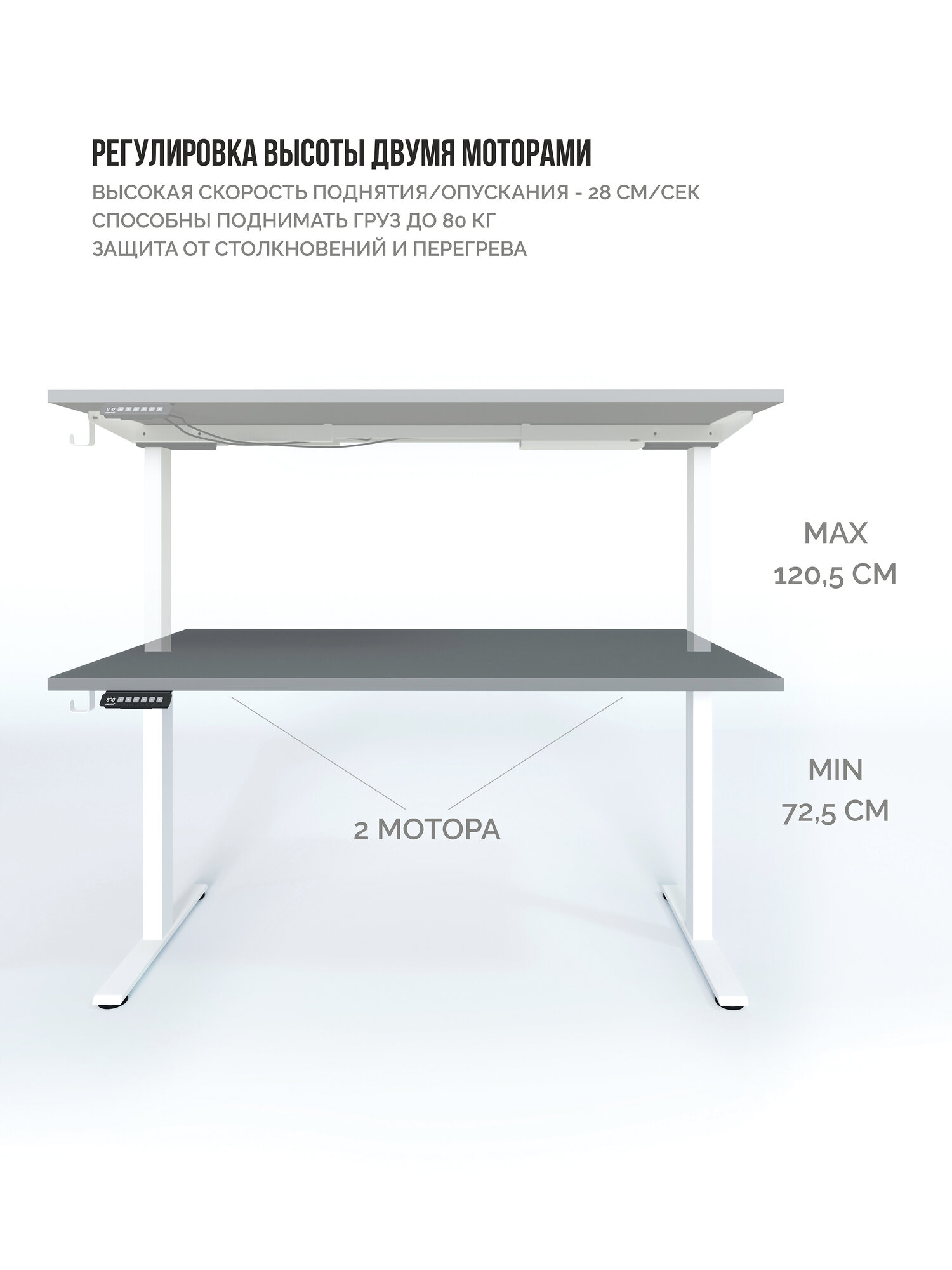 Стол компьютерный Ergostol Optima 2.0 180х90 см, регулируемый по высоте, Серый асфальт/белый: сравнение цен, характеристики, фото, актуальное наличие и цены.