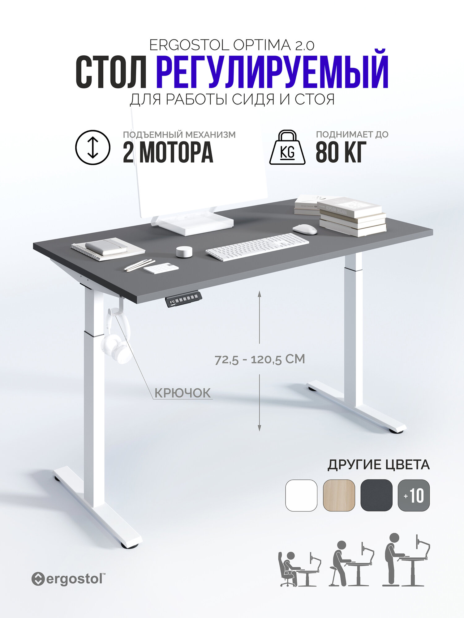 Купить Стол компьютерный Ergostol Optima 2.0 180х90 см, регулируемый по высоте, Серый асфальт/белый с доставкой по всей России.