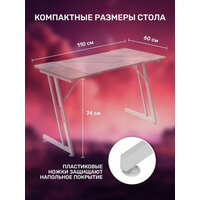 Прочная конструкция: основание стола выполнено из стальной рамы, обеспечивая его устойчивость и долговечность. Пластиковые накладки на ножках защищают напольное покрытие от царапин и других повреждений.
