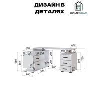 Многофункциональность: Стол оснащен двумя вместительными ящиками с одной стороны и тремя ящиками с другой, что предоставляет достаточно места для хранения документов, канцелярских принадлежностей и других офисных принадлежностей.