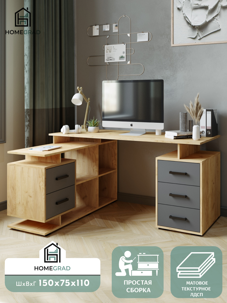 Купить Стол компьютерный HomeGrad КМУ-3, угловой, с полками и ящиками, ЛДСП с доставкой по всей России. Стол компьютерный HomeGrad КМУ-3, угловой, с полками и ящиками, ЛДСП: сравнение цен, характеристики, фото, актуальное наличие и цены.