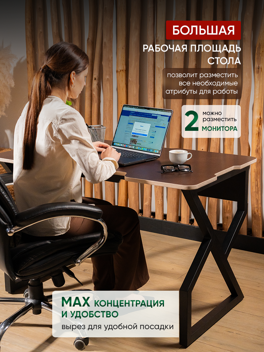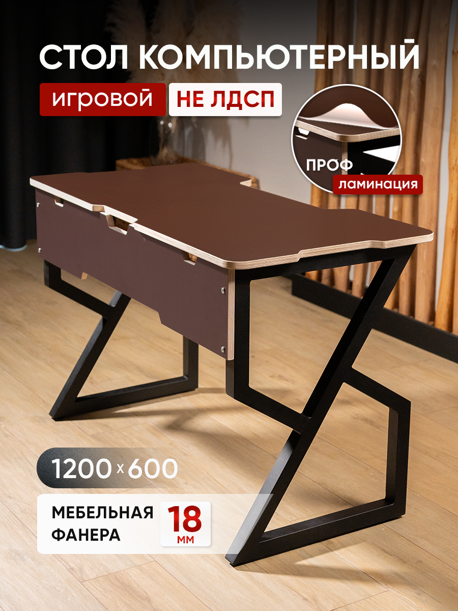 Стол игровой для пк черный + шоколад в стиле лофт - современное решение для вашего интерьера!