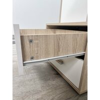 Стол компьютерный Квартет-9 Размер: (ВхШхГ) 1716х1400х550 Корпус: ЛДСП-венге/Ясень Шимо/Дуб крафт золотой/Белый с тиснением Фасад: ЛДСП-дуб Молочный/Дуб Сонома/Белый с тиснением/Белый с тиснением Ручки: Пластик. Ящик: Роликовые направляющие Лицевая фурнитура в цвет корпуса. Опоры стола имеют пластиковые подпятники, предохраняющие напольные покрытия от повреждения. Сборка стола не универсальная. Товар поставляется в разобранном виде.