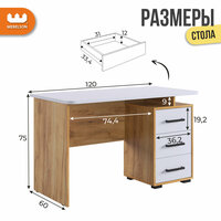 Стол компьютерный «Лайт-2» прямой с ящиками, цвет дуб крафт золотой/белый, 120*60*75 см, Mebelson: сравнение цен, характеристики, фото, актуальное наличие и цены.