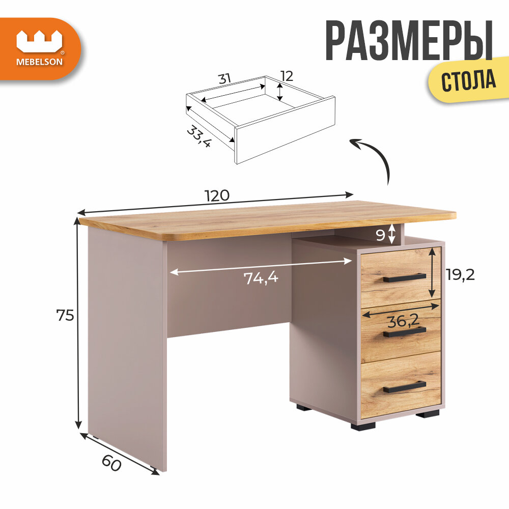 Стол компьютерный «Лайт-2» прямой с ящиками, цвет кашемир/дуб крафт золотой, 120*60*75 см, Mebelson: сравнение цен, характеристики, фото, актуальное наличие и цены.