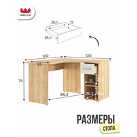 Пространство для работы: Стол оборудован просторной столешницей длиной 1200 мм, что обеспечивает массу рабочего пространства. Округленные углы столешницы минимизируют вероятность травм, делая использование стола безопасным.