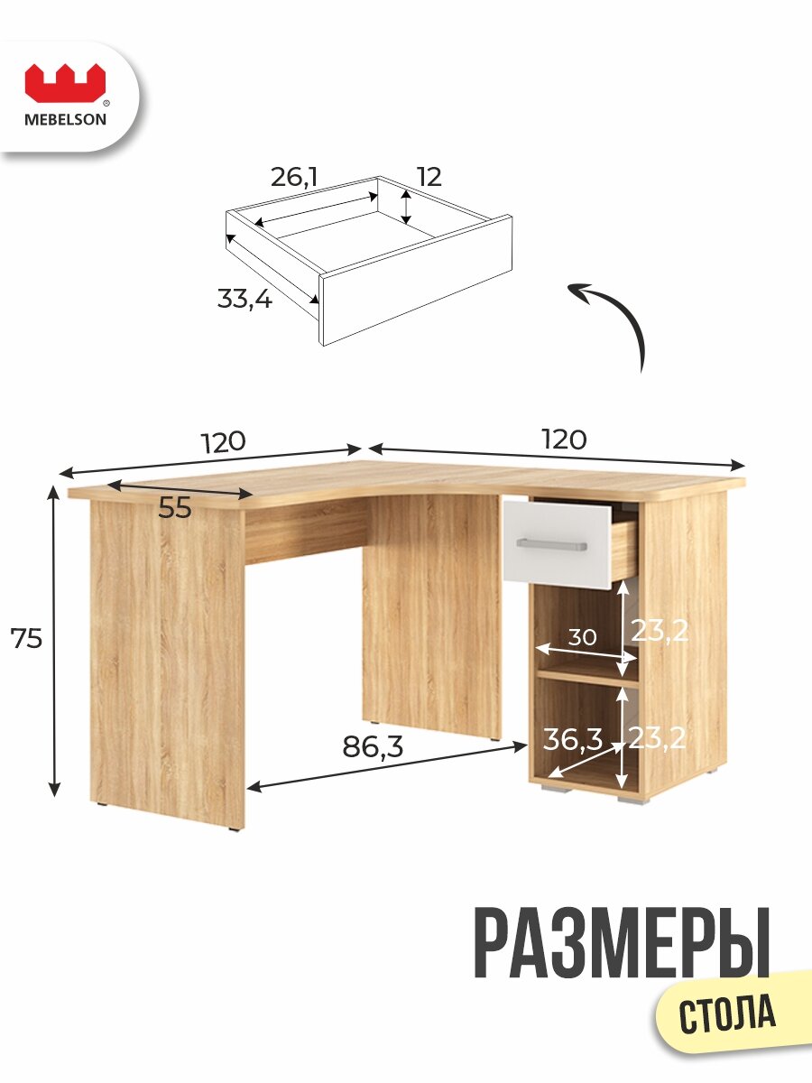 Купить Стол компьютерный угловой Лайт К1, Дуб сонома/белый, MEBELSON с доставкой по всей России. Стол компьютерный угловой Лайт К1, Дуб сонома/белый, MEBELSON: сравнение цен, характеристики, фото, актуальное наличие и цены.