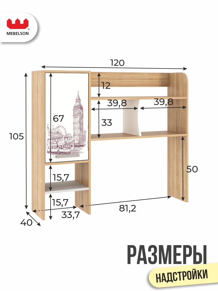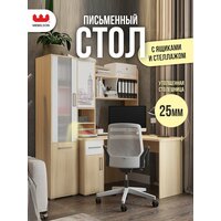 Надстройка для хранения: Стол оснащен надстройкой, которая оборудована вместительными полками для хранения книг, учебников, папок и другой документации. Также на полках можно разместить офисную технику, такую как сканер или принтер.