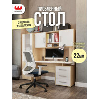 Купить Стол компьютерный с надстройкой и стеллажом Лайт К3, Дуб сонома/белый, MEBELSON с доставкой по всей России.